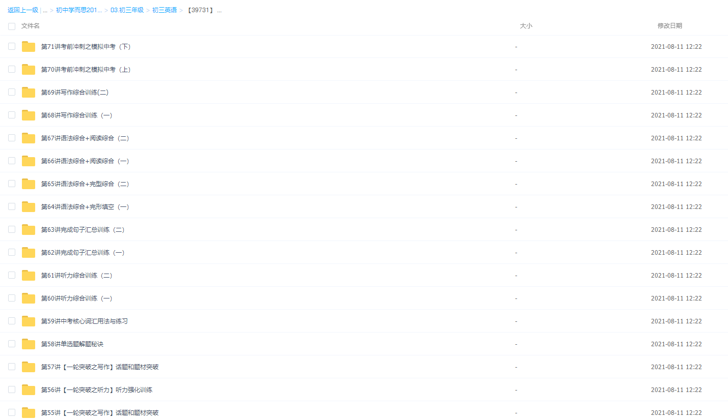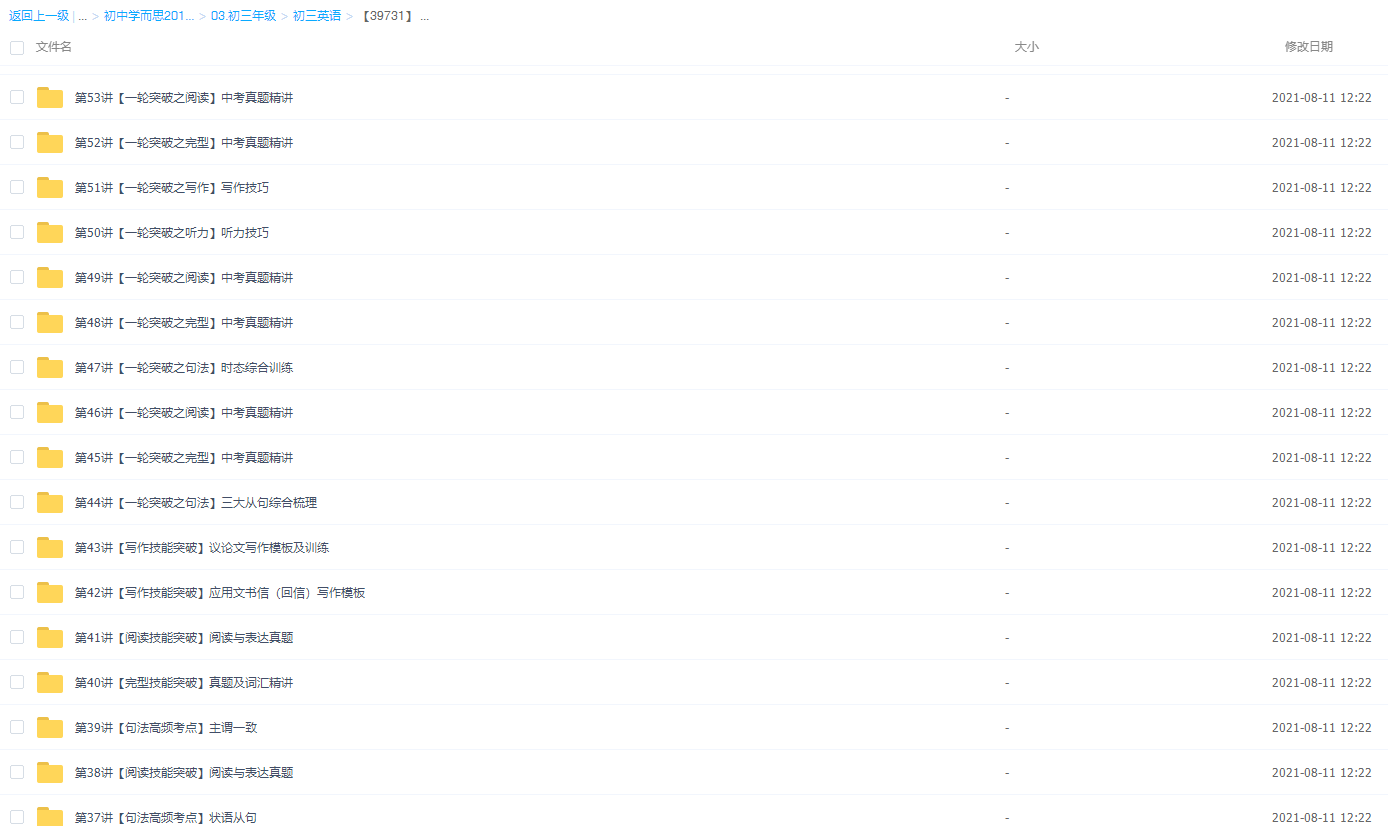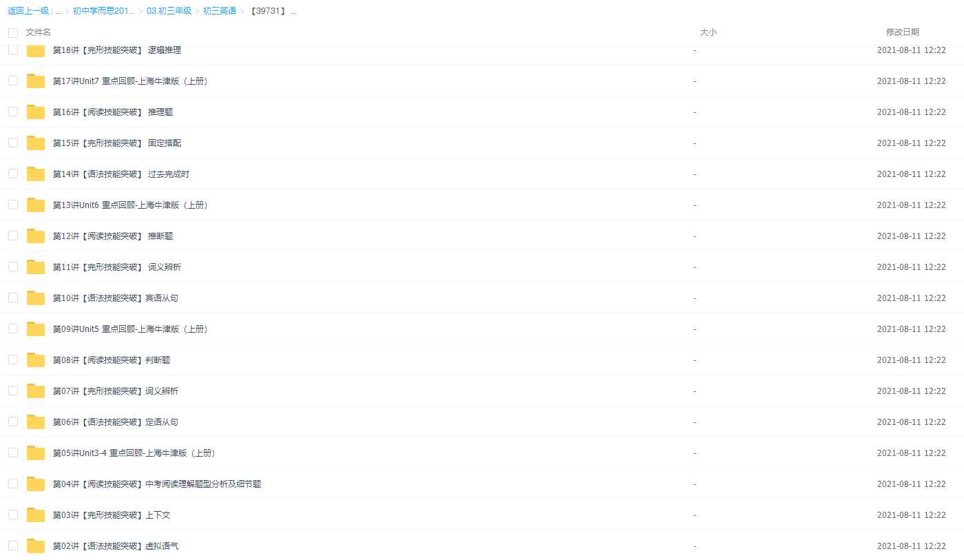 课程目录: 状态 讲次 名称 已上线第1讲:初二英语学习方法指导及教材提前看 已...