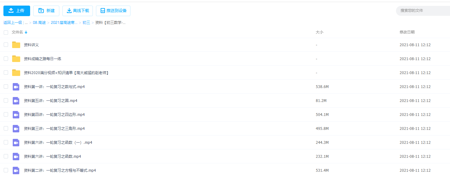 此课件来自高途课堂,2021高途课堂初三数学寒假赵尔吉视频课程,包含视频课程和讲义资料 。 此课件主要内容包括:一轮复习之数与式、—轮复习之圆、—轮复习之四边形、—轮复习之三角形、—轮复习之函数、—轮复习之方程与不等式等视频。