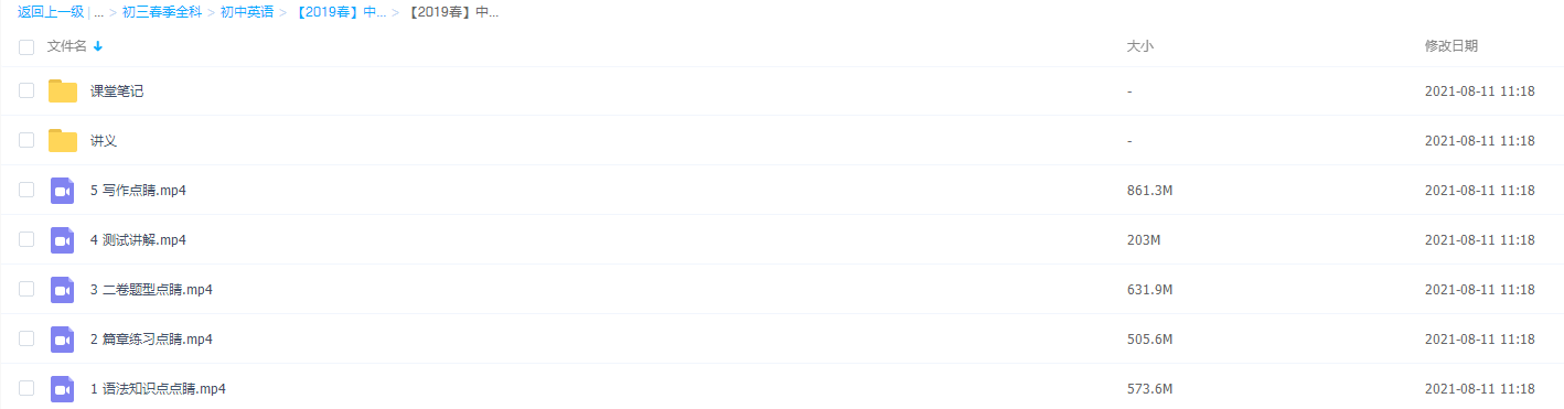 此课件来自作业帮网校,中考英语三轮点睛班,包含视频课程和讲义资料。此课件主要内容包括:语法知识点点晴-张潇月、篇章练习点晴-张亮、二卷题型点晴-张潇月、测试讲解-张亮、写作点晴-王凯皎 等视频