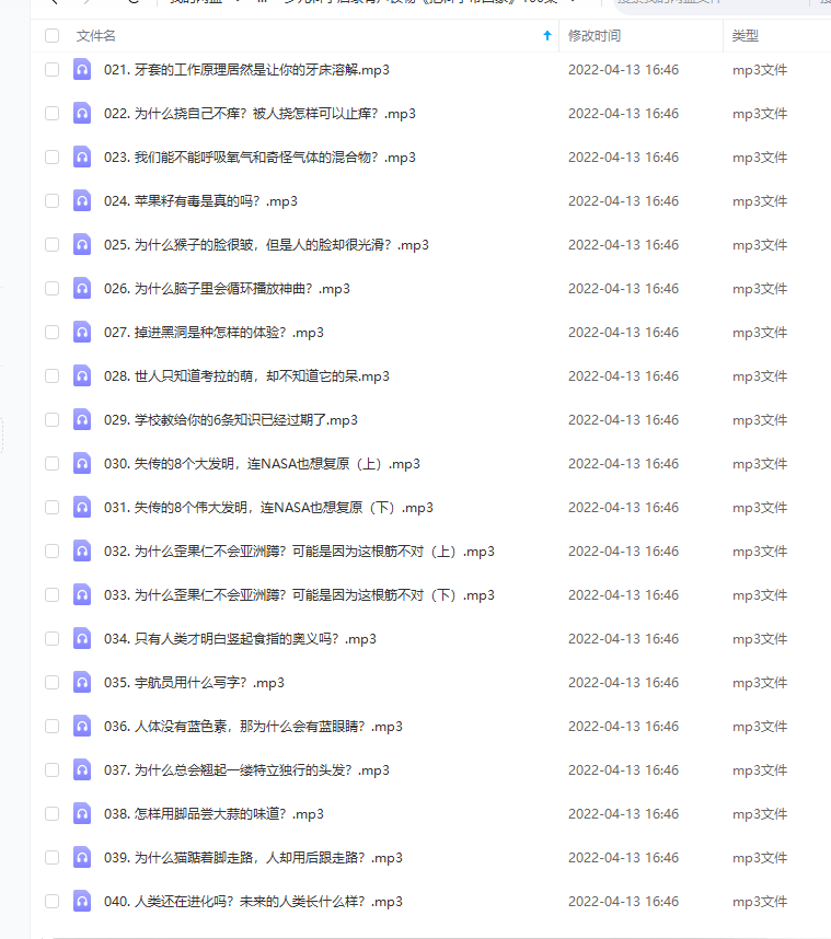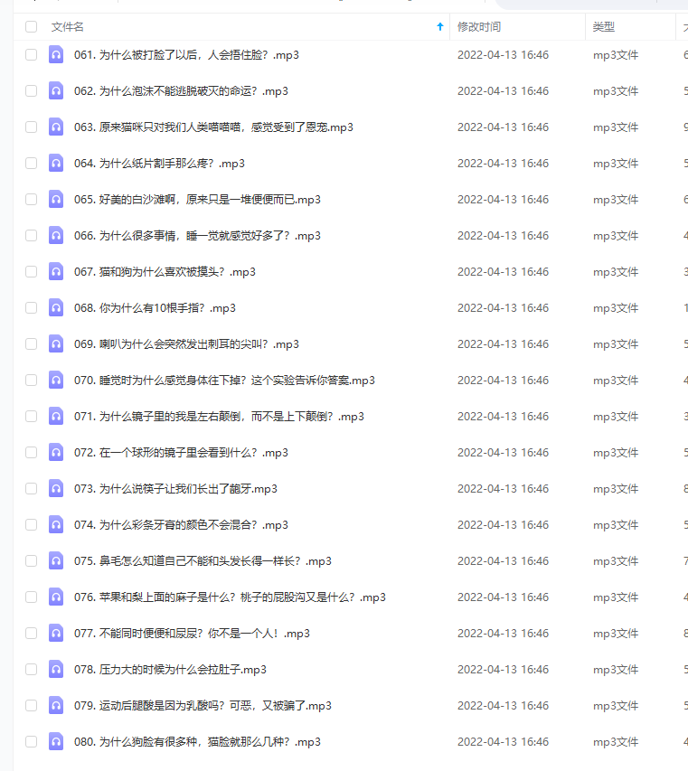 少儿科学启蒙有声读物《把科学带回家》MP3音频,共100集。
