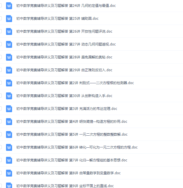 此课件来自初中奥数竞赛培优专题讲义全集精品打包,包含经典高频考题专项复习,想要拿高分必须要掌握。名师精讲,做到让家长放心,冲刺更舒心,竞赛真题的讲解,知识点的梳理,专题专练专讲,也让孩子的竞赛水平得到提升。
