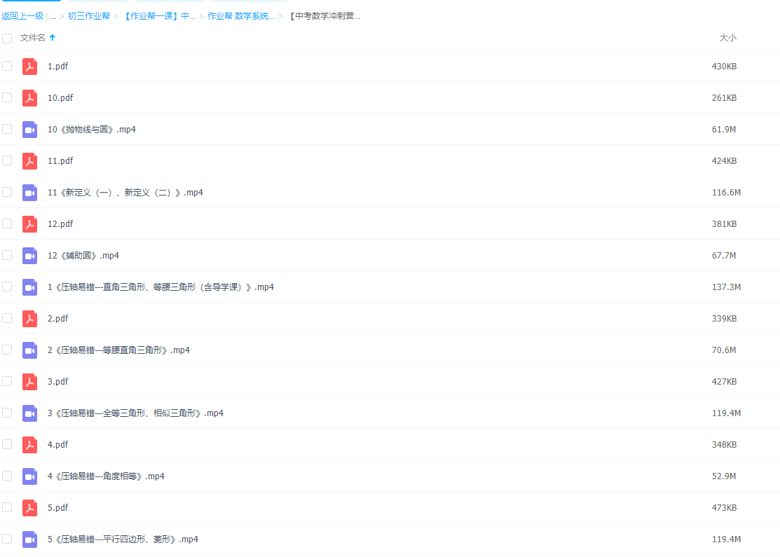 【作业帮】中考数学冲刺营热点压轴模型班全课程视频合集