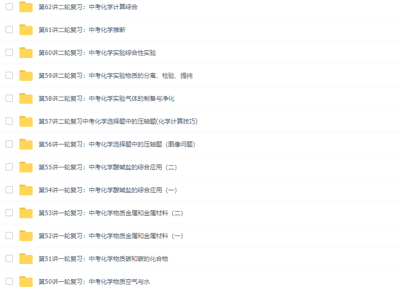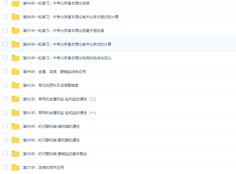 课程目录: 状态 讲次 名称 已上线第1讲:酸碱盐的化学性质总结 已上线第2讲:...