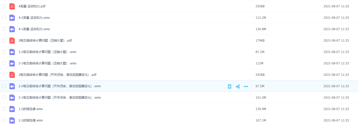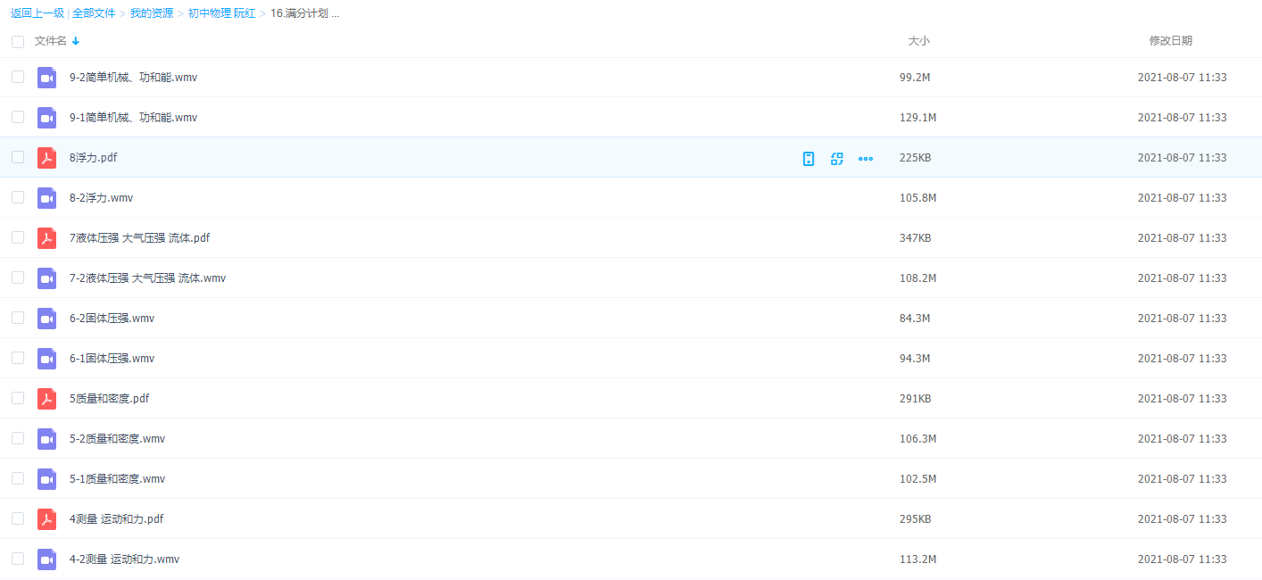 本课件是阮红老师的初中物理力学和电学相关课程,内容全面,包含了知识点讲义和视频教学课程,一定有你所需要的!