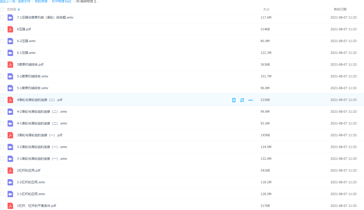 高清视频随便下载,想学习的孩子一定要积极,杠杆的原理要牢记,做题要记住公式的噢!机械效率一定会考到题目!