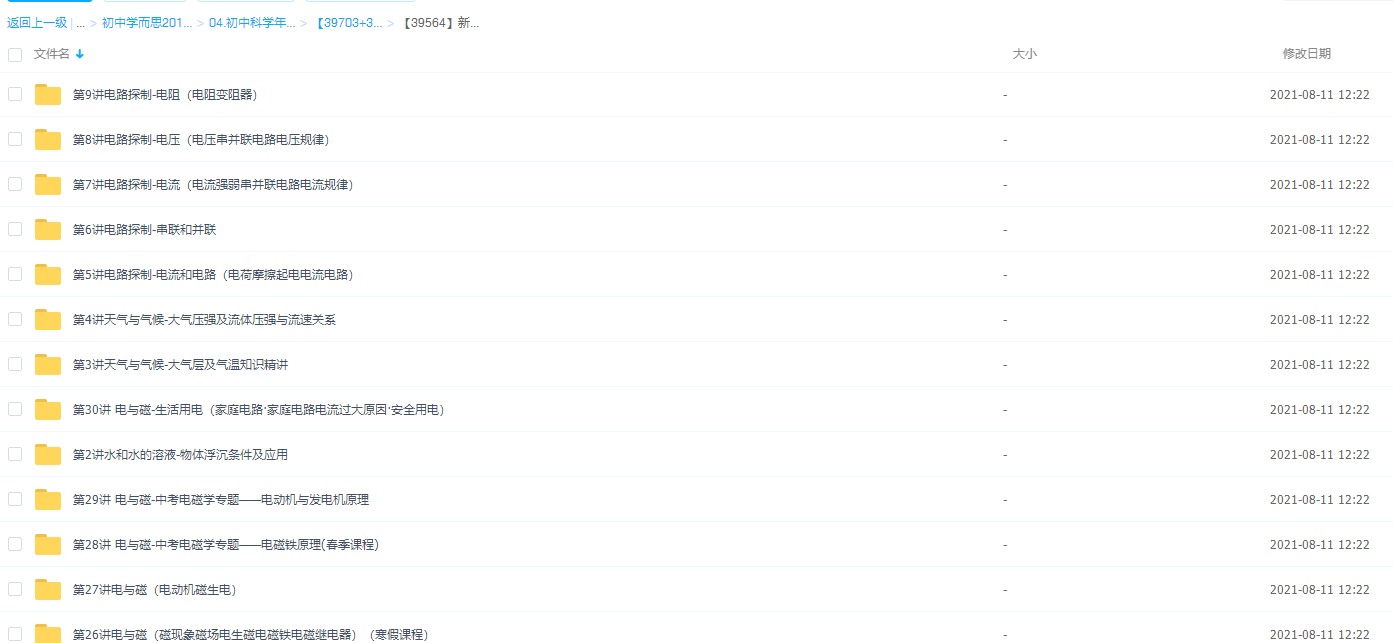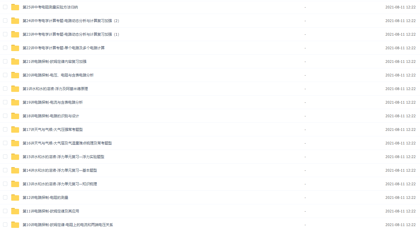 此课件来自学而思网校,【39564】新初二科学年卡尖子班(浙江浙教版)——物理篇,包含视频课程和讲义资料。此课件的主要知识点包括:电炉探测、天气与气候、电与磁、水和水溶液、中考电阻测量实验方法归纳、 中考电学计算专题等视频。