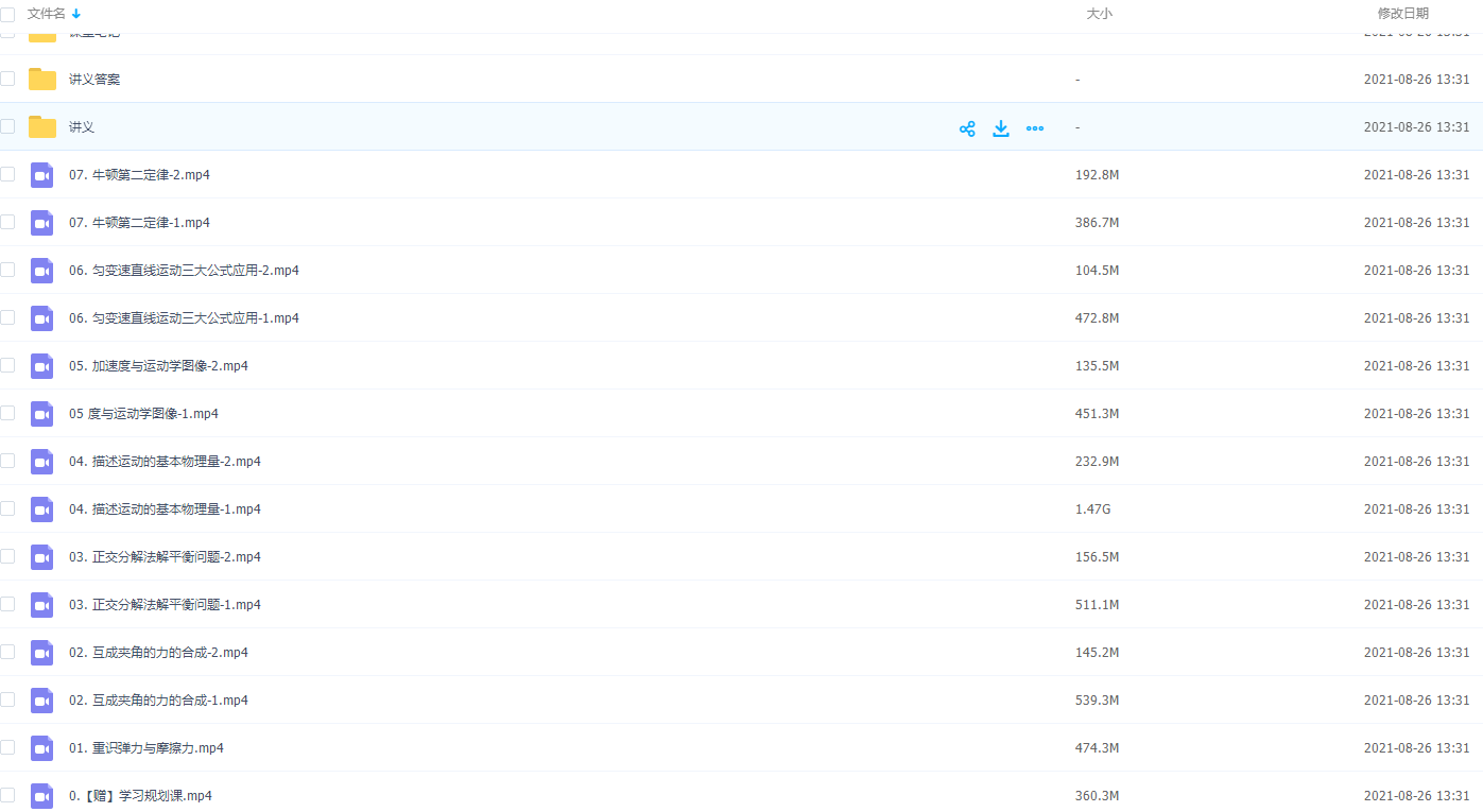 此课件来自作业帮网校,高一胡婷物理尖端班视频课程,包含视频课程和讲义资料。 主讲胡婷老师善于挖掘学生思维盲区,将繁琐步骤总结为技巧大招,让学生不自觉爱上课堂。此课件主要知识点包括:匀变速直线运动三大公式应用、加速度与运动学图像、描述运动的基本物理量、牛顿第二定律、重识弹力与摩擦力等视频。