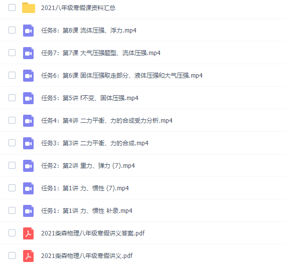 此课件来自柴森物理2020初二物理秋夏秋冬四季全套,知识点讲解,学习简单中档题型,掌握基本实验方法,重在夯实基础,同步拔高学习中考重难点必考题型归纳,课时难度专项训练,达到中考水平。