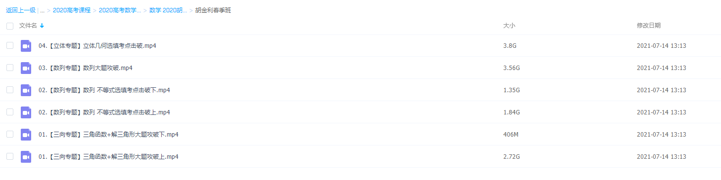 数学2020胡金利胡金利春季班知识点讲解视频课程网课资源
