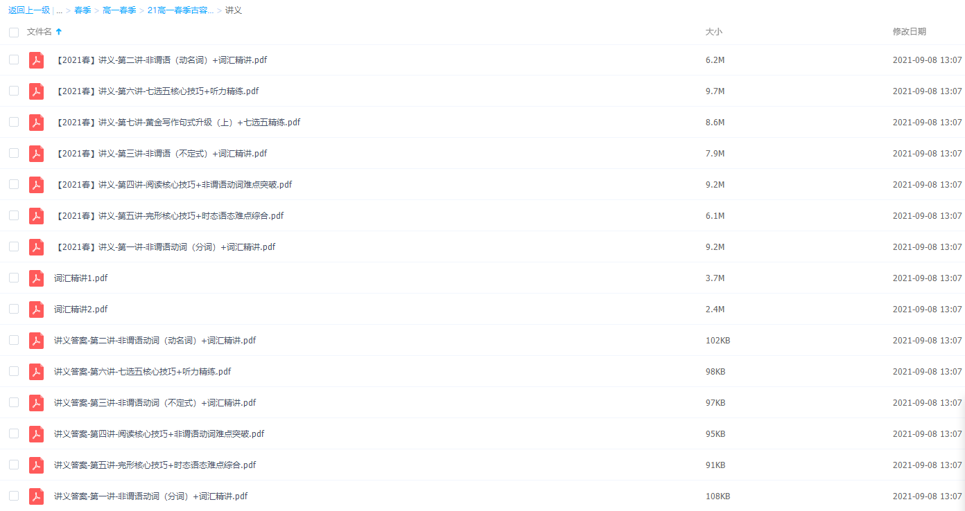 随着教材难度的加深,词汇量的不断增大,高中英语成为高中学习的一个难点。但是我们都知道任何一个学科的学习都有它内在的方法,英语学习也不例外。那么怎样才能学好高中英语呢?把高一到高的三所有的单词打印下来,每天记50个单词,可以先遮盖英语,我们根据汉语读出英语;然后再遮盖中文,我们根据英语明确汉语意思,再把不知道单词就记录在自己的单词本上;此课件来自作业帮网校,2021作业帮高一春季古容容英语尖端课程讲义,希望对大家有所帮助!