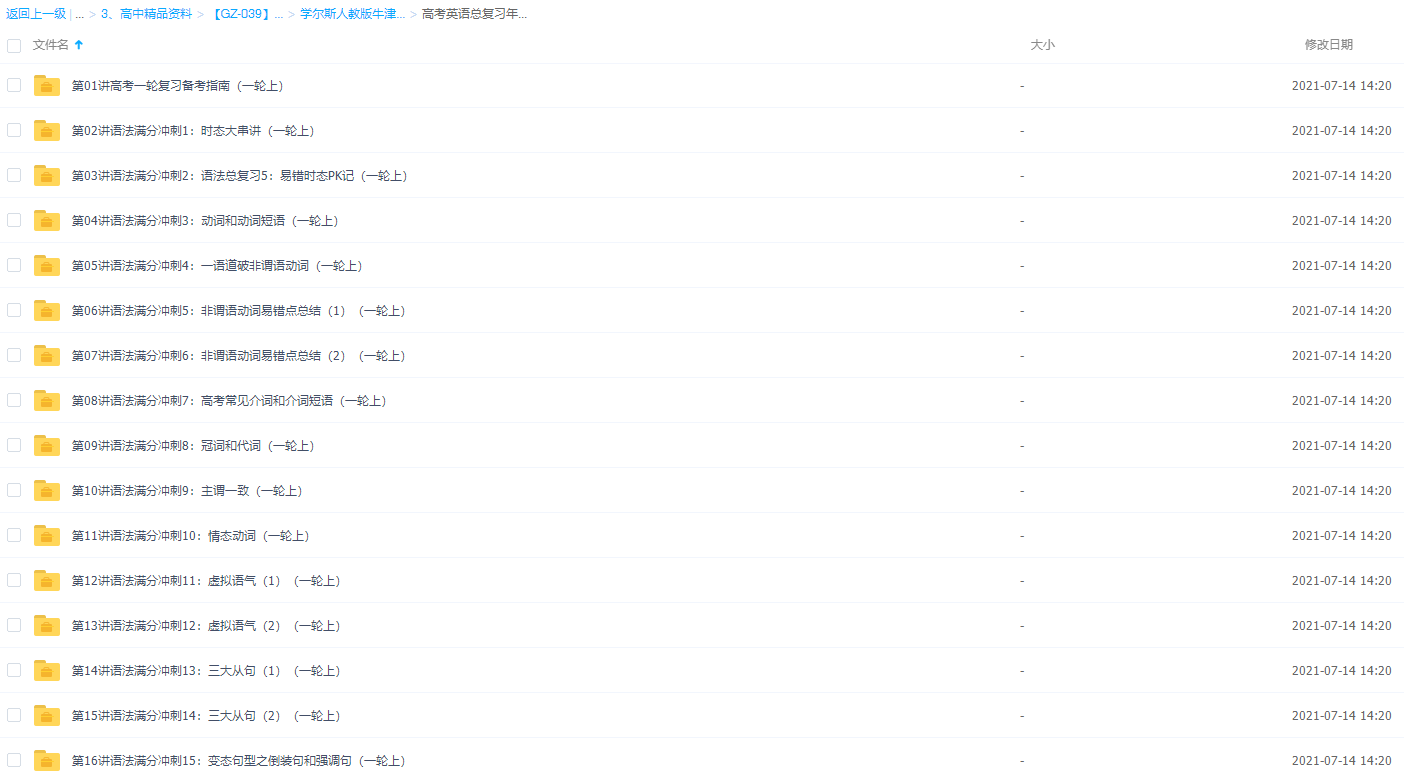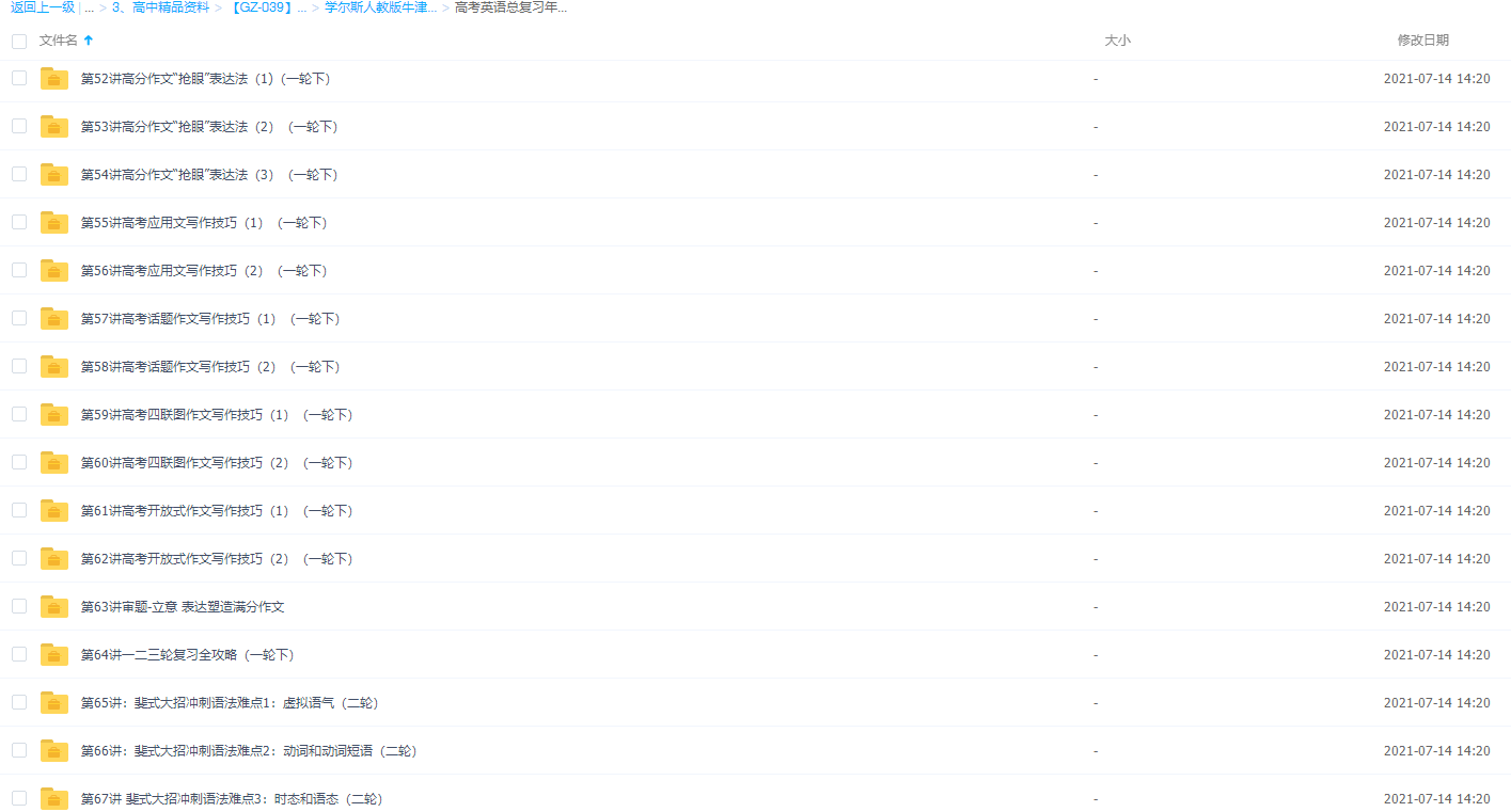 杨亮 2020新全民英语背诵营 70天完整版 目录:├─00讲义│ └─01-1...