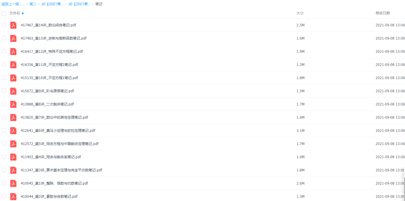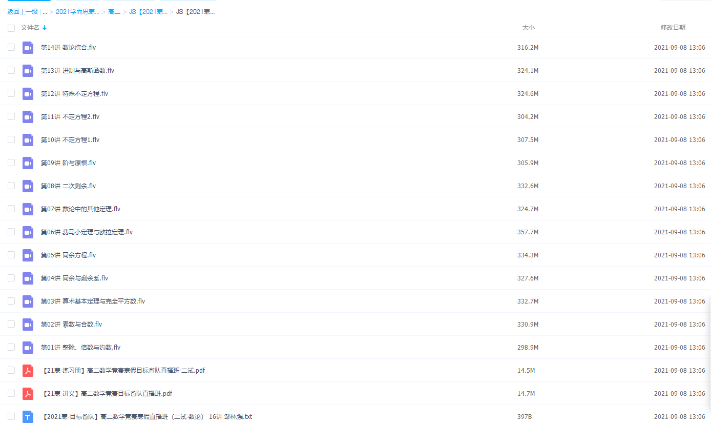 此课件来自于学而思网校,2021学而思高二邹林强数学竞赛寒假直播班(二试-数论),包括课程视频以及课堂资料讲义。主要知识点包括整除、倍数与约数、素数与合数、术基本定理与完全平方数、同余与剩余系、同余方程、费马小定理与欧拉定理、数论中的其他定理、二次剩余、阶与原根、不定方程、特殊不定方程、进制与高斯函数和数论综合等视频。主讲邹林强老师其教学特点是擅长举一反三,采用启发式教学,课堂上激发学员,提高信息效率。