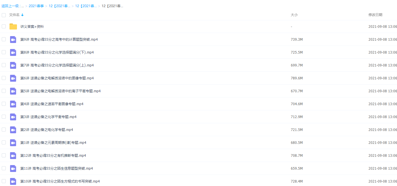 此课件来自于学而思网校,2021学而思三化学郑瑞寒假二轮复习(上)目标清北直播班视频课程,包括课程视频回放以及课堂资料讲义。此课件主要知识点包括:元素周期表(律)专题、电化学专题、化学平衡专题、速案平衡图像专题、电解质溶液中的离了平衡专题、电解质溶液中的图像专题、化学选择题满分、高考中的计算I型突破、陌生方程式的书写突破、陌生信息题型突被和有机推断专题等视频。
