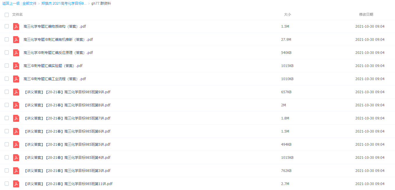 此课件来自学而思网校,2021郑慎杰化学二轮复习目标985班,包含视频课程和讲义资料 。主讲老师参与新教材教辅编写,参加多年高考解析,接受过新浪教育的高考分析采访,随时跟进高考讯息。此课件主要知识点包括:逆袭必备之元素周期表(律)专题、电化学专题、化学平衡专题、速率平衡图像专题、电解质溶液中的离子平衡专题、电解质溶液中的图像专题、高考必得55分之化学选择题满分、高考中的计算题型突破等视频