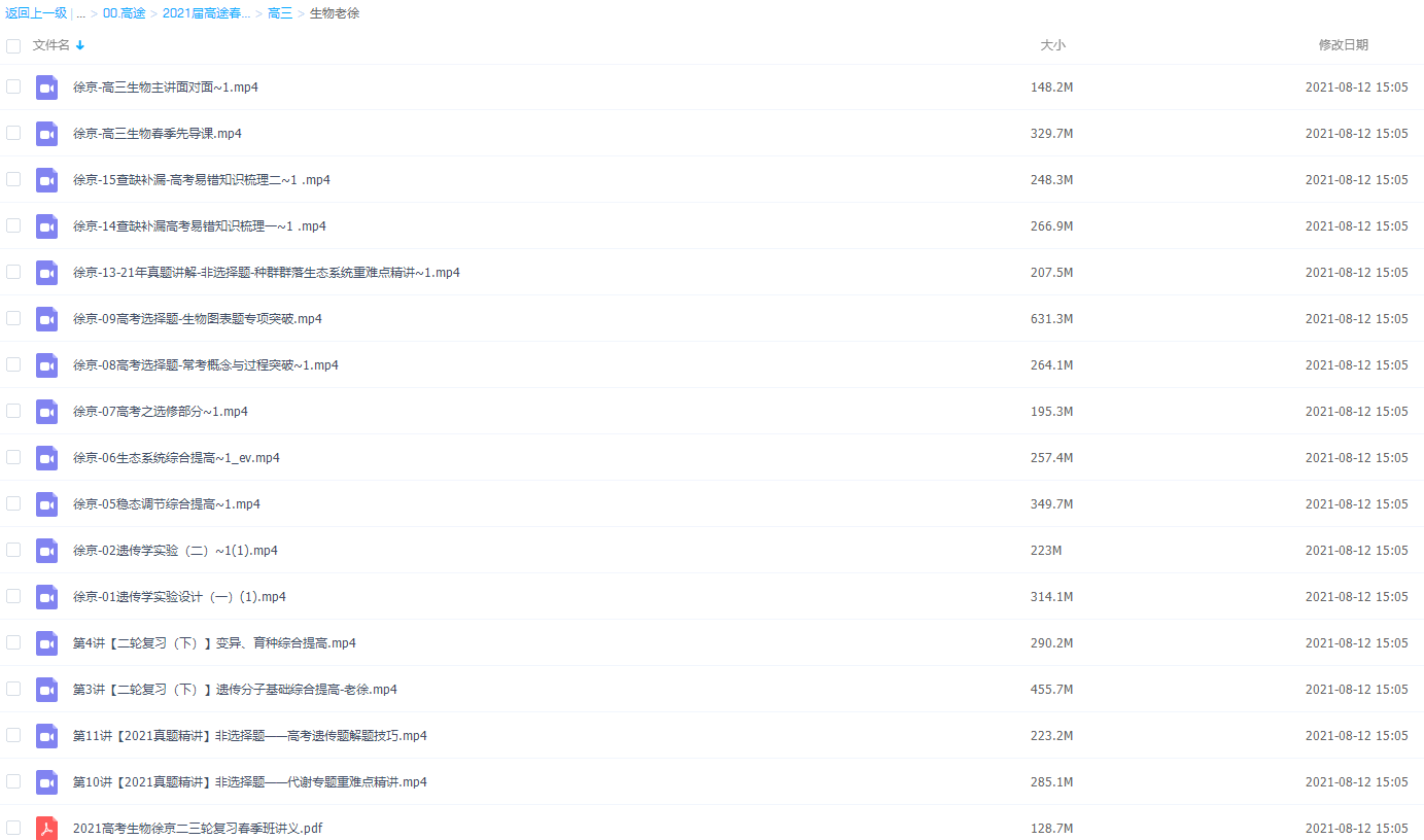 段瑞莹高三生物课程,本课程共2.5G,VIP会员可通过网盘转存下载或者在线播放。...
