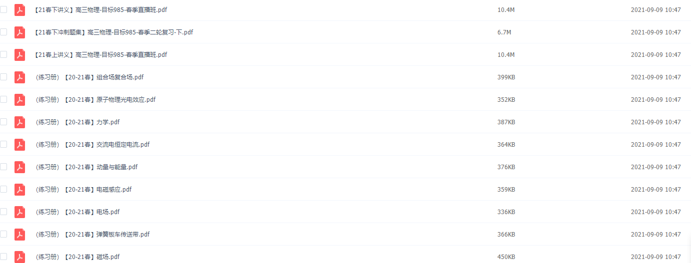 2021学而思高三章进物理春季二轮复习(下)目标985直播班