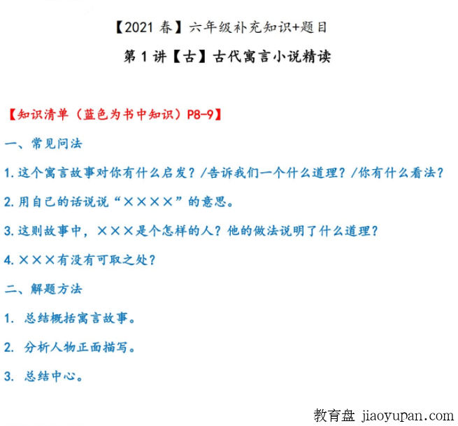 2021六年级大语文直播班(达吾力江)古代寓言小说赏读