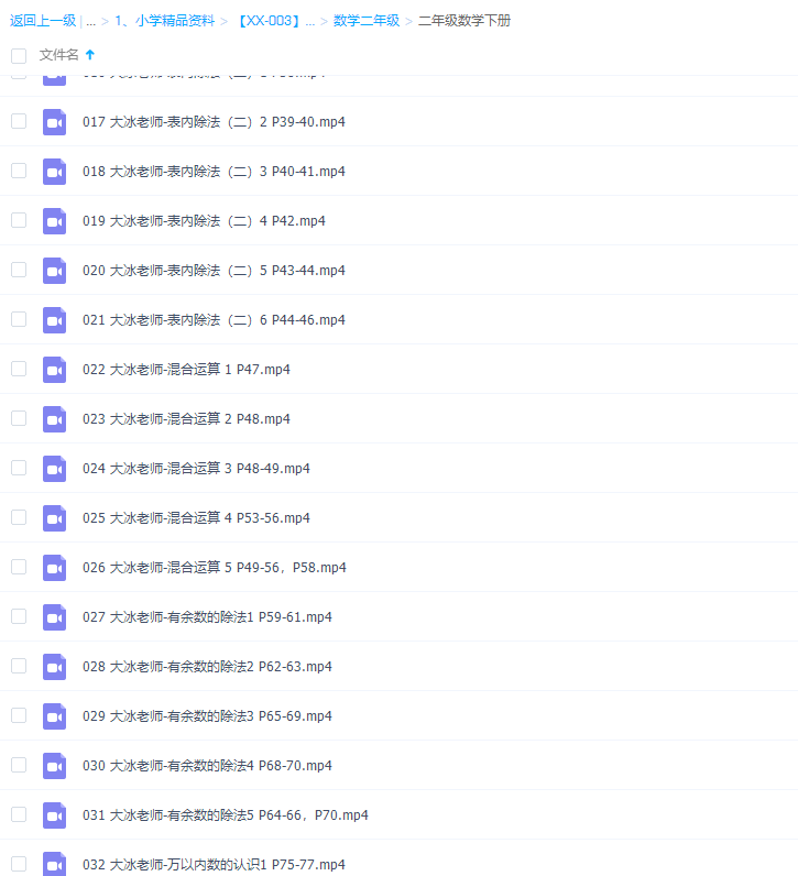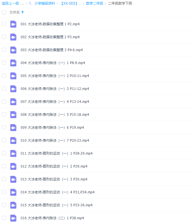 此课件来自人教版小学二年级数学下册网课同步辅导讲课教学视频全集,共43讲。此课件主要知识点包括:数据收集整理、表内除法(一)、图形的运动(一)、表内除法(二)、混合运算、有余数的除法、万以内数的认识、克和千克、数学广角、总复习,10个单元课程内容,知识点同步人教版小学2年级数学下册课本,欢迎二年级的小朋友们观看学习!