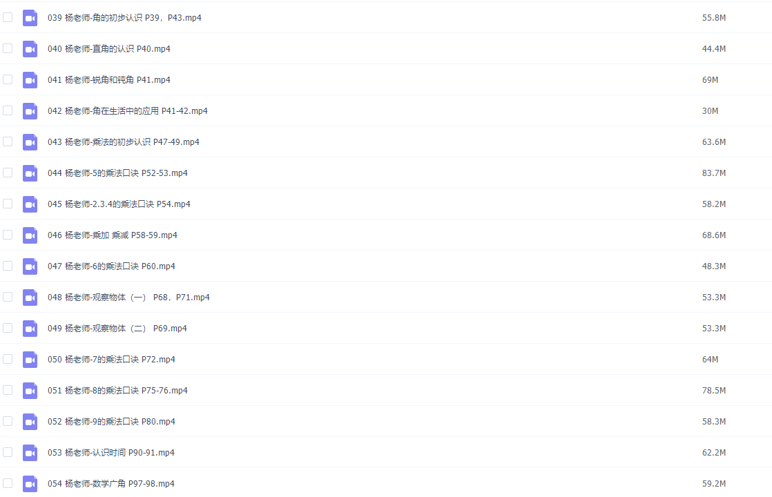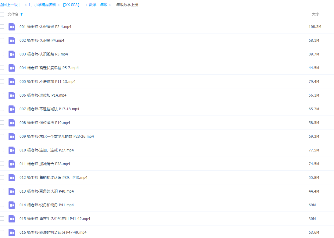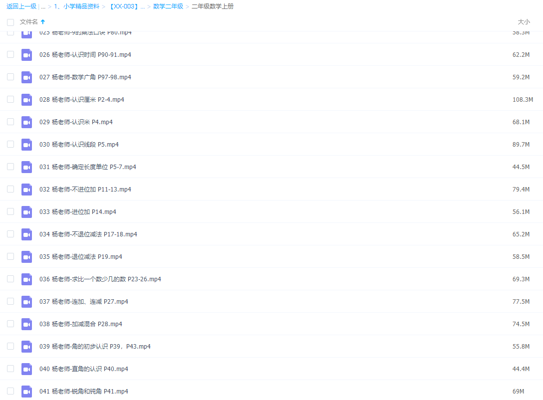 人教版小学二年级数学上册网课同步辅导讲课视频课程全集