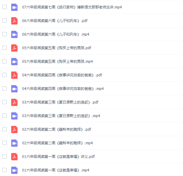此课件来自博新语文郭郭老师六年级阅读一起做阅读,此课件主要知识点包括:第一周《这就是幸福》、第二周《藏羚羊的跪拜》、第三周《夏日原野上的追赶》、第四周《做事讲究效率的爸爸》、第五周《购买上帝的男孩》、第六周《儿子和列车》、第七周《旅行家树》、第八周《乡村素描》、第九周《像烟灰一样松散》、第十周:《不可缠绕的心灵》、第十一周:《路面上的新科技》、第十四周:《阅读海报》、第十五周:《药品说明书》。