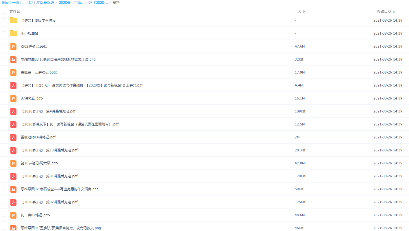 学而思2020年春季班初一石雪峰语文阅读写作直播班